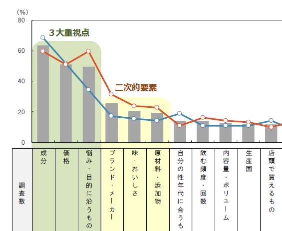 「ブランド・メーカー」「味・おいしさ」よりも、悩みに合致した商品を重視。