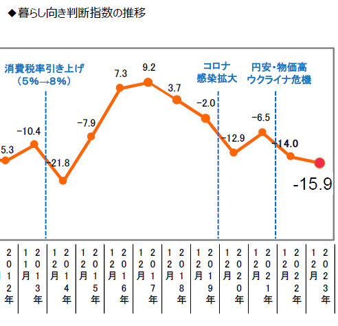 〇2023年末の『暮らし向き判断指数』は-15.9ポイント。